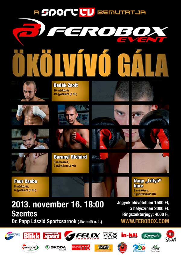 Újabb színvonalas profi boksz gálát rendez a Ferobox Event csapata. A helyszín Szentes, az a város, ahol márciusban teltházas gálát tartott a promóter cég, nem is akármilyen mérkőzésekkel és hangulatban. Ahogy azt már megszokhattuk, a november 16-i eseményt ismét élőben közvetíti a Sport Televízió. Aki ott volt márciusban Szentesen, vagy a tv képernyője előtt, biztosan emlékszik még rá, hogy a szenzációs hangulatú gálán tért vissza Bedák Zsolt (19-1-0, 7 KO/TKO) vagy szerezte meg magyar bajnoki övét Nagy Sándor (10-0-0, 10 KO/TKO). Előbbi ezúttal is a kötelek közé lép, így visszatérése óta ötödször is bizonyíthatja, hogy ő országunkban a kispehelysúly abszolút egyeduralkodója.