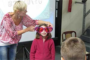 Ezen a délutánon a gyerekek megismerkedhettek Kovács Áronnal és nem mindennapi szemüvegével, sőt ki is próbálhatták azt. Majd megtudhatták, hogy kik vagy mik azok a pegaurok.