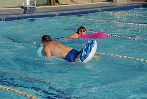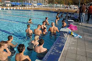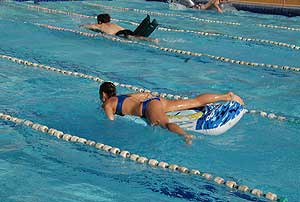 Nem kellett mást tenni, mint a matracot felfújni, utána egy oda-vissza hosszt evezni a matracon fekve, és jöhetett a váltás.