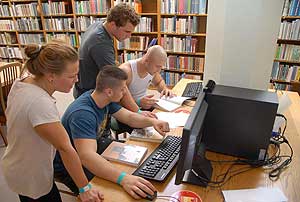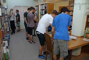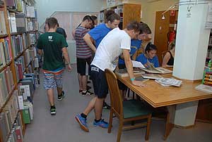 Délután egy kis üdítő futás után a csapatok bevették a Városi Könyvtár épületét. A Titkok Könyvtára feladatban megfelelő könyvekből tudhatták meg a kérdésekre a válaszokat, és amint azok meglettek futás volt ismét a táborba.