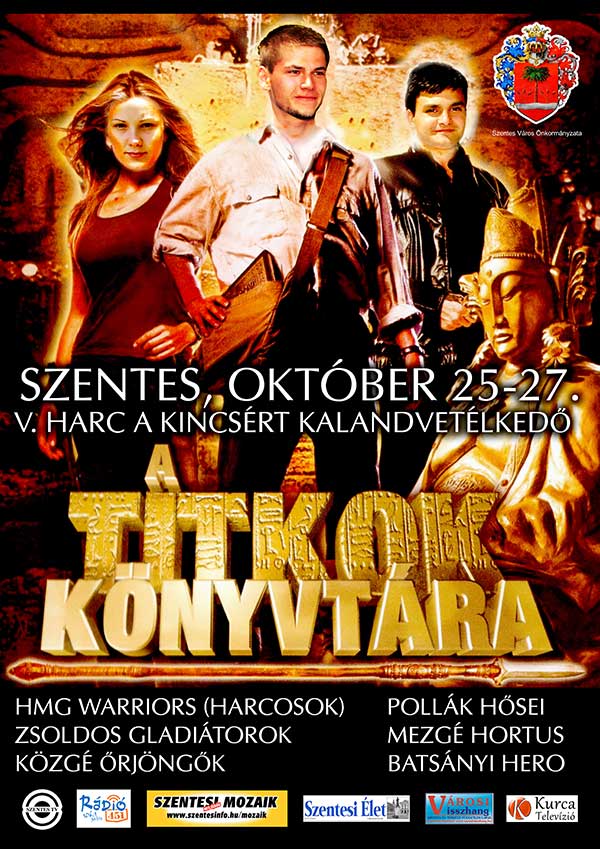 Kedves Kalandorok! Készüljenek a szentesi középiskolák csapatai, mert hamarosan indul az 5. Harca kincsért kalandvetélkedő, a TITKOK KÖNYVTÁRA! Idén a legbátrabb kalandorok az esővel, a hideggel, a zsenik tudását igénylő fejtörőkkel, valamint kőkemény fizikai kihívásokkal (mint pl. akadályok szédítő magasságokban, kommandós kiképzés, paint ball, stb.) találják majd szemben magukat. Az október 25-27.-i időpontban három napon keresztül csak a legkeményebb csapatoknak sikerülhet a feladatok maradéktalan végrehajtása, és azok közül is csak egy csapat viheti el a győztes iskolának járó sportfelszerelés csomagot! A játékmesterek ettől a héttől folyamatosan töltik fel a kalandvetélkedővel kapcsolatos rendkívül fontos információkat a rendezvény weboldalára, amelyet a www.szentesinfo.hu/aharc oldalon találtok. A VERSENY ELINDULT! Az első feladat, hogy jövő hétre minden középiskola jelölje ki csapatát az alábbi kritériumok szerint: -a csapatnak 5 főből, és minimum egy lány tagból kell állnia -bármelyik évfolyamból lehet csapattag -a csapatban maximum 1 fő tanár, vagy tanárnő lehet -a tanárnő kiválthatja az egy fő lány indulót -a teljes csapatnévsort el kell küldeni adatokkal együtt (csapattagok neve, elérhetőségeik, TAJ, lakcím, anyja neve) -a csapatoknak ki kell találniuk egy csapatnevet is -A KÉRT ADATOKAT LEGKÉSŐBB OKTÓBER 7.-IG EL KELL KÜLDENI a bertok@griroda.hu, és a vferenc@szentesinfo.hu e-mail címekre! -FIGYELEM! Az a csapat, amelyik csapatfotót is küld a megadott e-mail címekre, egy bázisponttal kezdi a versenyt!!