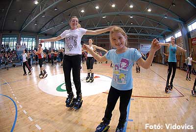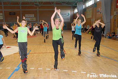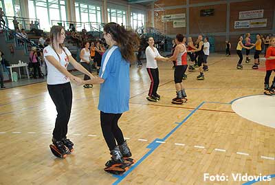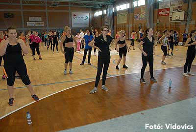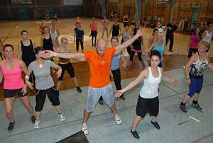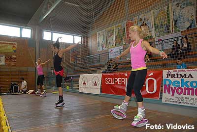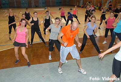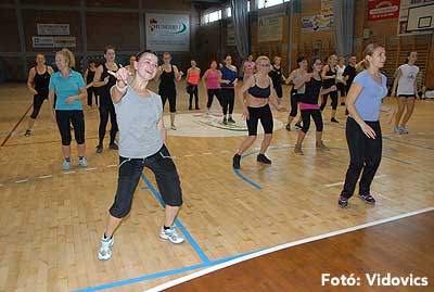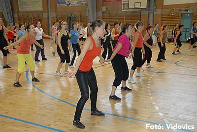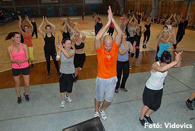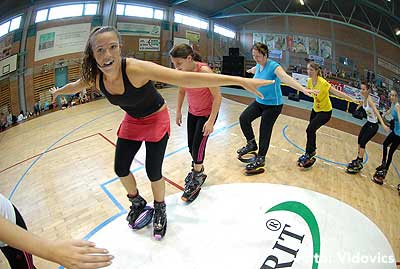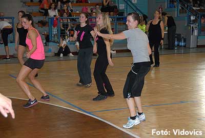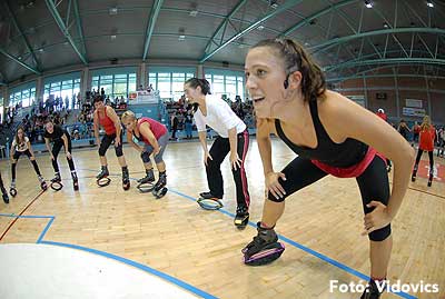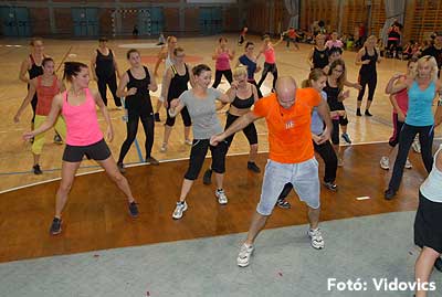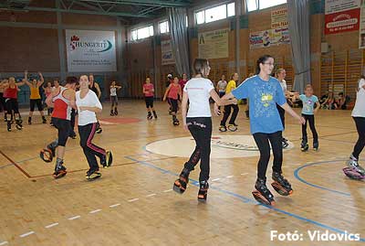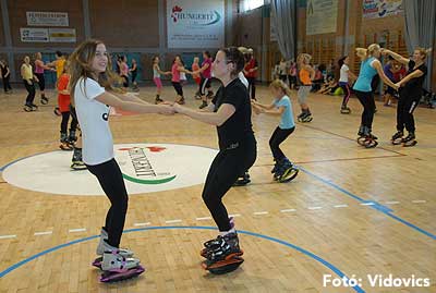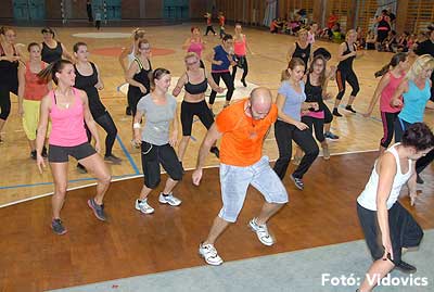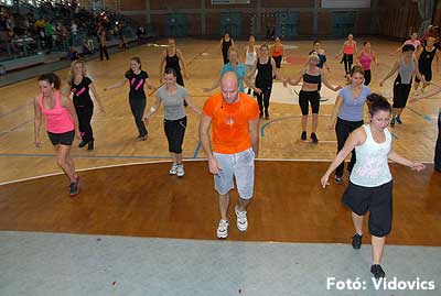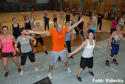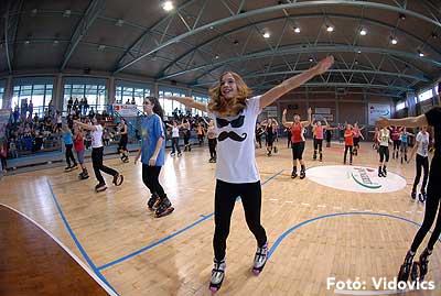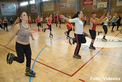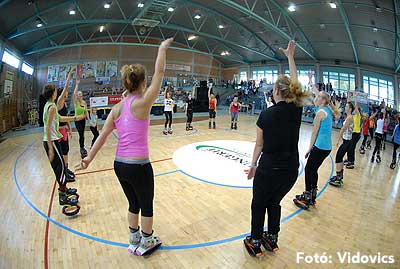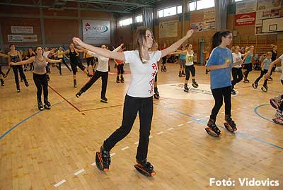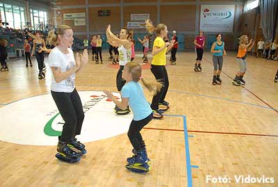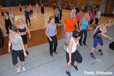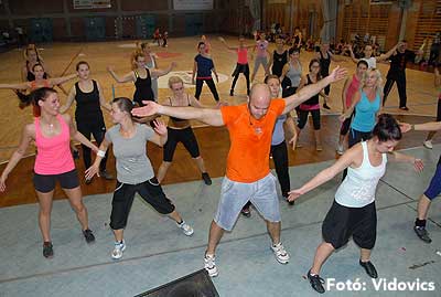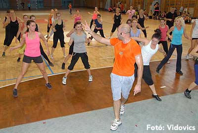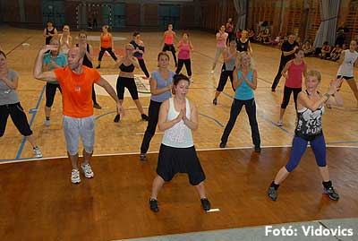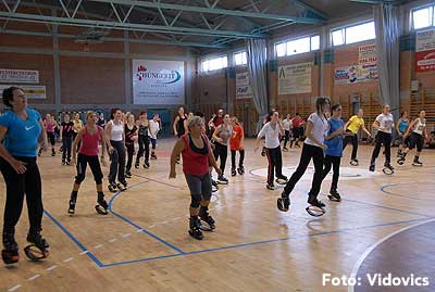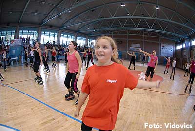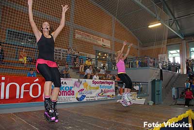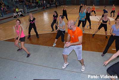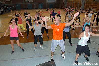 Ezután 200 tornázónak volt lehetősége kipróbálni a kangoo-t, majd egy különleges óra jött Kiss Gáborral, aki Afro Dance órát tartott.