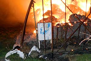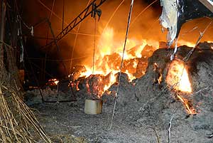 Este 8 órakor érkezett a jelzés, hogy Fábiánsebestyén külterületén 700 nagy körbálás szalma kapott lángra. A kettes, kiemelt riasztás során a szentesi, csongrádi és orosházi hivatásos tűzoltók a Fábiánsebestyéni Önkéntes Tűzoltó Egyesület egységeivel közösen kezdték meg a lángok oltását és a közelben lévő épület, valamint a tűz által érintett terület mellett lévő további szalmabálák védelmét.