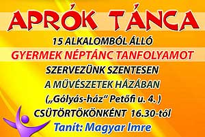 Tizenöt alkalomból álló gyermek néptánc tanfolyamot szerveznek a Művészetek Házában. Csütörtökönként fél 5-től Magyar Imre várja a tanulókat. Katt a képre! Szentes, 2013. 10. 08.