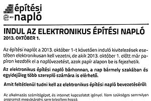 Felhívjuk a jogerős építési engedéllyel rendelkező és leendő építtetők figyelmét, hogy a 2013. október 01-je után induló kivitelezési tevékenységeknél az e-napló (elektronikus építési napló) használata kötelező. Bővebb információ a www.e-epites.hu honlapon a „Szakmai tudástár” menüpont alatt, vagy a Szentesi Közös Önkormányzati Hivatal Műszaki Iroda Építéshatósági Csoportjánál (H-6600 Szentes, Kossuth tér 6., Tel: 06-63-510-300) Katt a képre! Szentes, 2013. 10. 02.