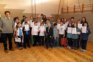 A Koszta József Általános Iskolában rendezték meg 2013. október 17-én a Kisiskolások közlekedési versenyét. A szentesi Rendőrség Közlekedésrendészeti osztályának támogatásával kiírt versenyen az általános iskolások 3-4. osztályos tanulói vehettek részt. Ebben az évben, három iskolából (Deák, Koszta, Fábiánsebestyén) 8 csapat nevezett a versenyre. Korosztályuknak megfelelő tesztlapot töltöttek ki, majd az iskola udvarán található KRESZ-parkban forgalmi szituációban a rendőrök pontozása mellett kellett minél szabályosabban közlekedniük, valamint az ügyességi pályán vetélkedtek. Katt a képre! Szentes, 2013. 10. 18.