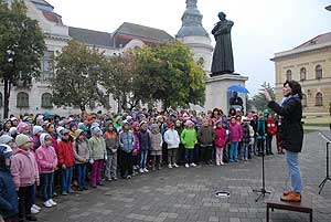 Yehudi Menuhin kezdeményezésre emelte az UNESCO október 1-jét A ZENE VILÁGNAPja rangjára. Ezen a napon a zeneművészet legnagyobb alakjaira emlékeznek világszerte. A Kiss Bálint Református Általános Iskola diákjai 2013. október 1-jén erre a napra emlékezett a Kossuth téren, ahol gyermekdalokat és egy vallási éneket énekeltek el közösen reggel 8 órakor. Katt a képre! Szentes, 2013. 10. 01.