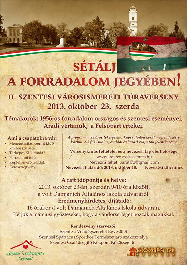 2013. október 23-án Városismereti Túraversenyt szerveznek a Felsőpárton. További részletek a plakáton!