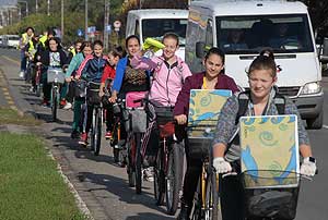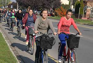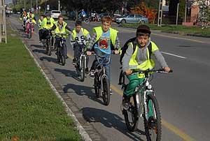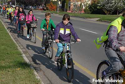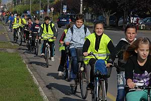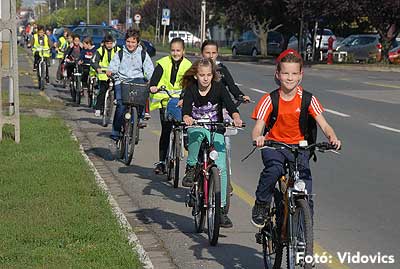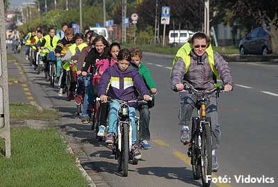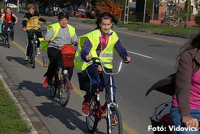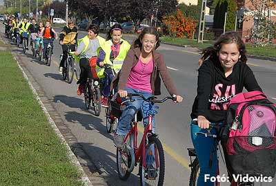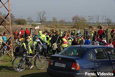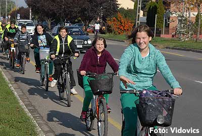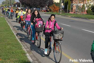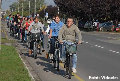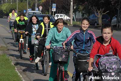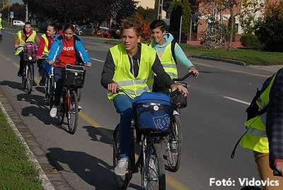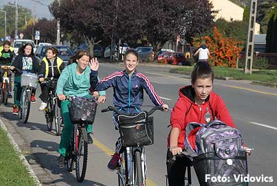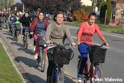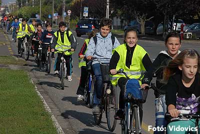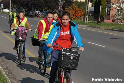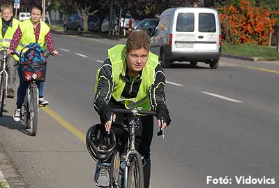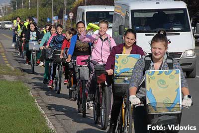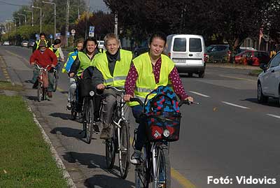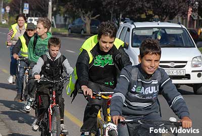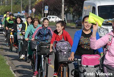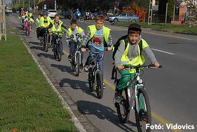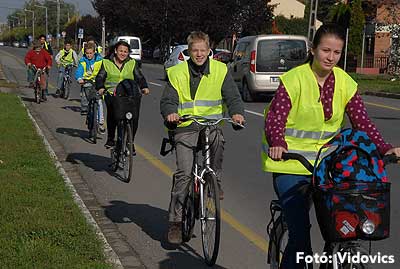 Az elkerülő út csatlakozásánál a rendőrség felügyelte az iskolások biztonságos kerékpározását, de csak egy dolog nehezítette a kerekezők dolgát. Ez nem volt más mint a szembe szél!