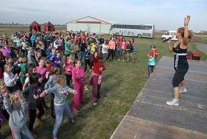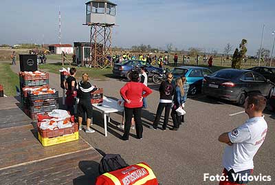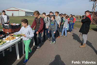 A megérkezés után mindenki aki ebédel az iskolában megkapta elemózsiás csomagját, és máris neki lehetett kezdeni a bemelegítésnek.