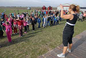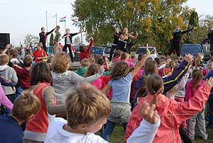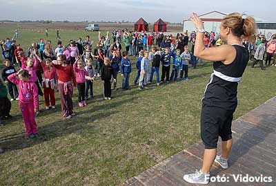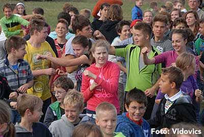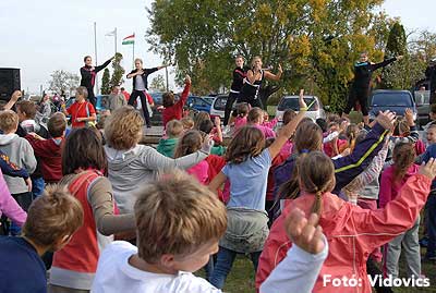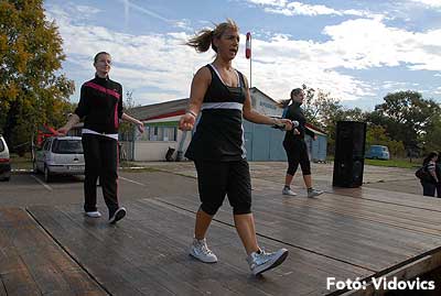 A közös aerobic jót tett mindenkinek, de legfőképp a hangulatnak. Nem volt más hátra, mint hogy az osztályok körforgásban teljesítsék a sok-sok akadályt.