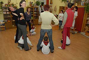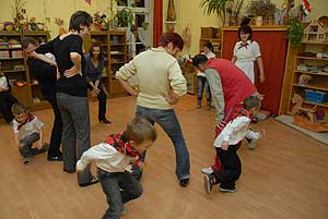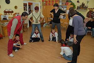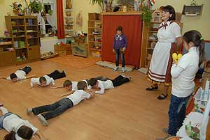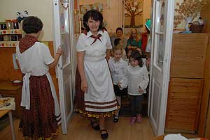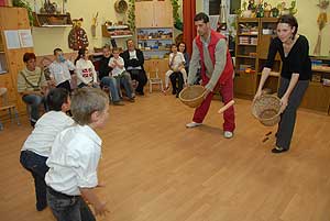 - Ezt követően a gyermekek hatékony foglalkoztatása érdekében (a nap mint nap használt véletlenszerű csoportbontás után-kooperatív foglalkoztatás) „a fehér libák” családi ügyességi verseny keretén belül mérhették össze erejüket, míg a „szürke libák” pedig a szüleikkel, testvéreikkel barkácsolhattak a jeles naphoz és az évszakhoz illő dolgokat.