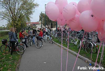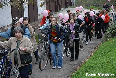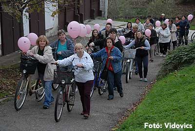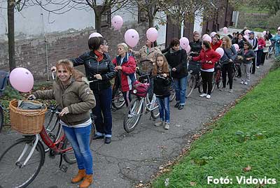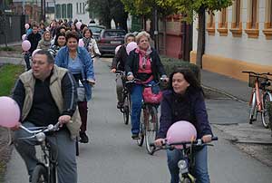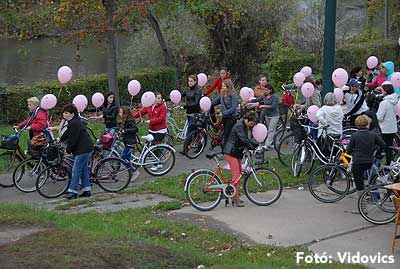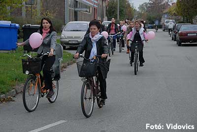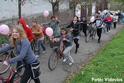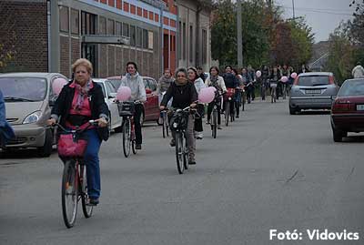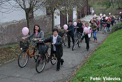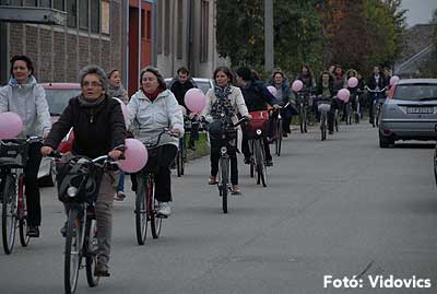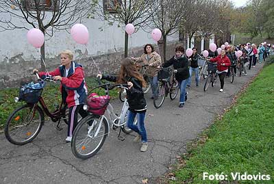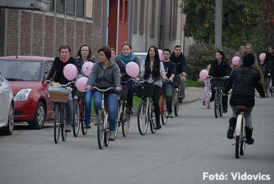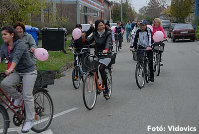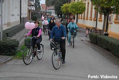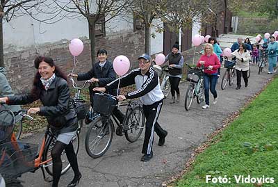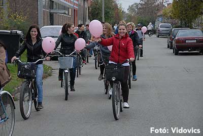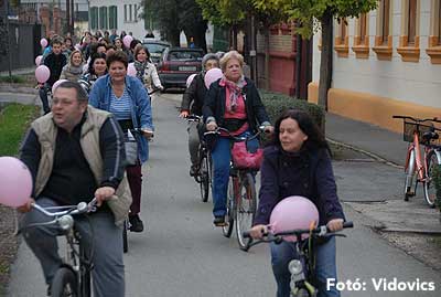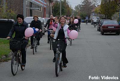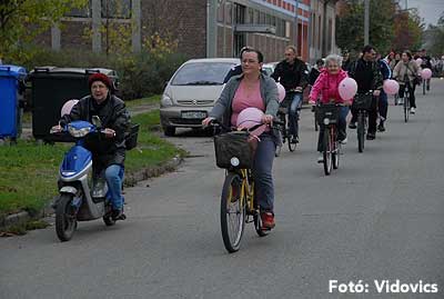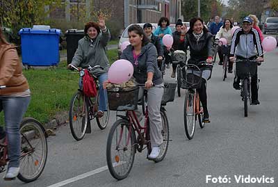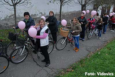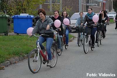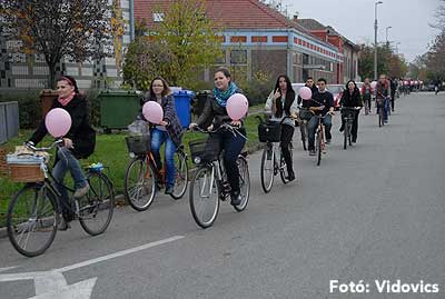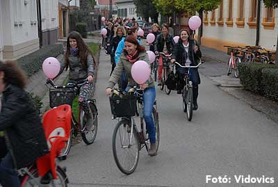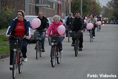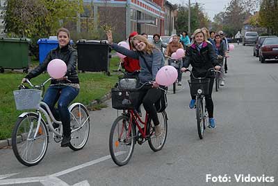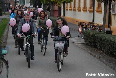 Figyelemfelhívó kerékpározás Szentesen Az emlőrák elleni küzdelem fontosságára akarták a figyelmet felhívni a közös kerékpározással!