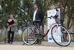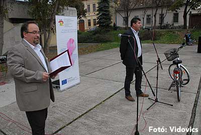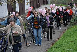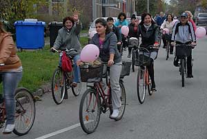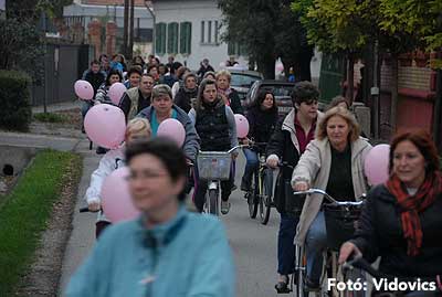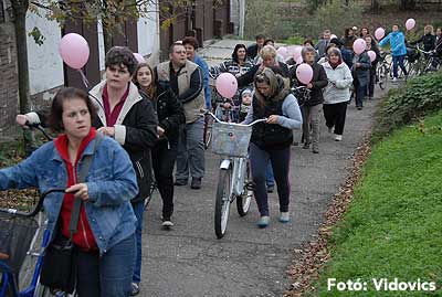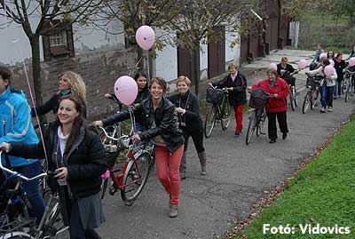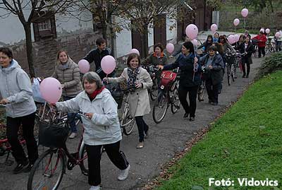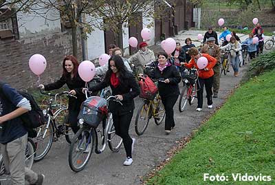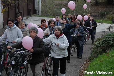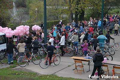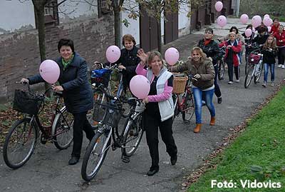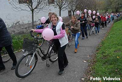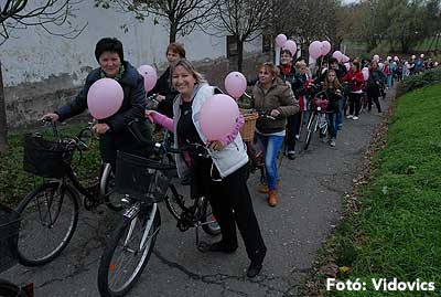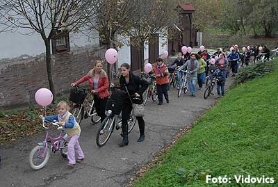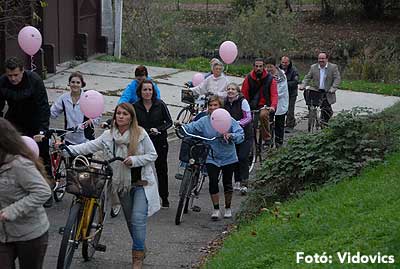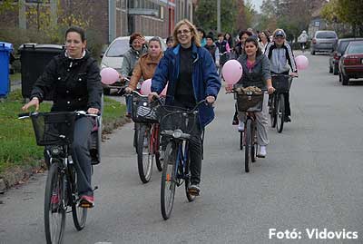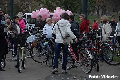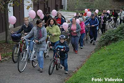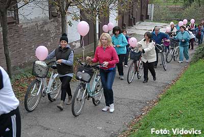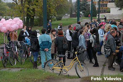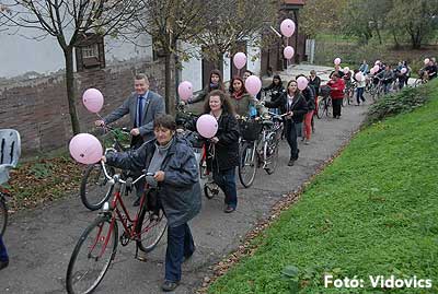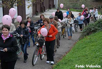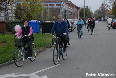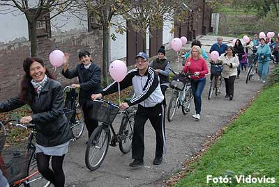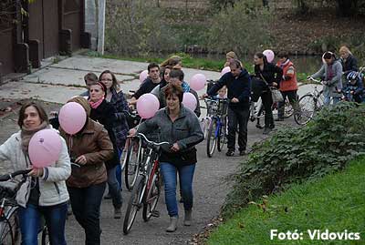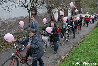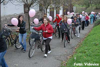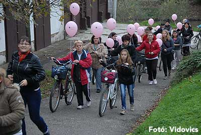 Figyelemfelhívó kerékpározás Szentesen Az emlőrák elleni küzdelem fontosságára akarták a figyelmet felhívni a közös kerékpározással!