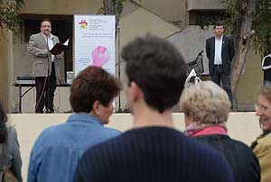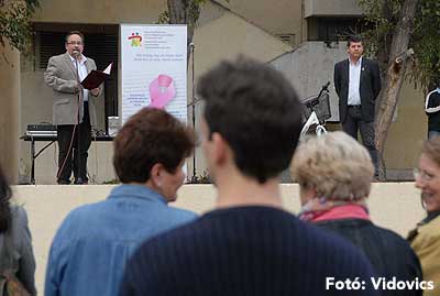 A köszöntő után Dr. Bagi Róbert osztályvezető főorvos az emlőszűrés fontosságáról tartott "előadást", melyet röviden összefoglalva azt lehet mondani, hogy "TEDD MEG MAGADÉRT ÉS A CSALÁDODÉRT!".