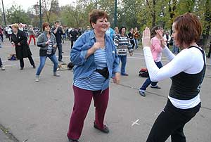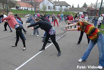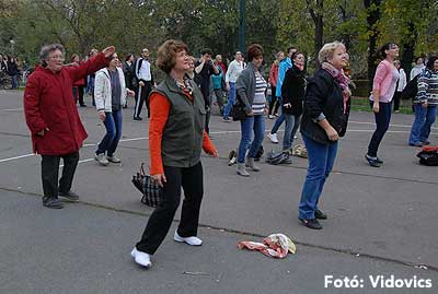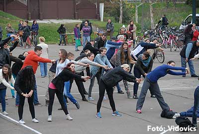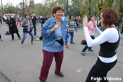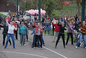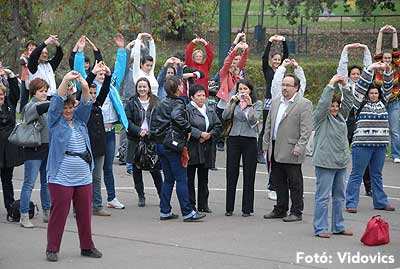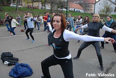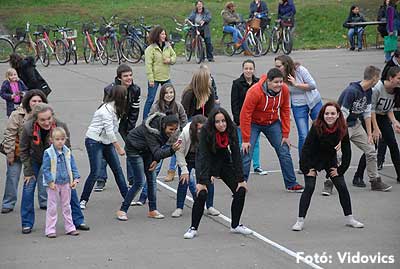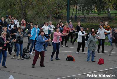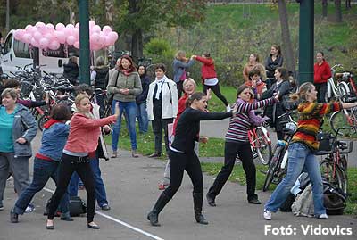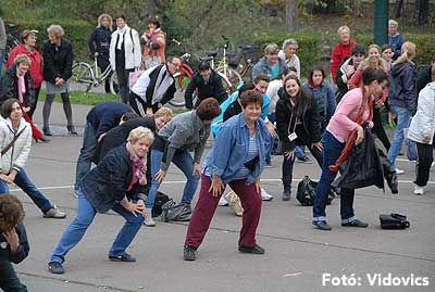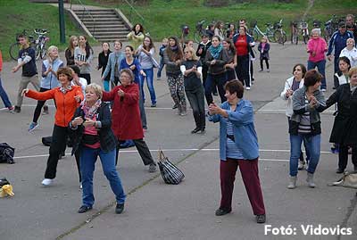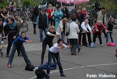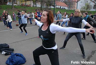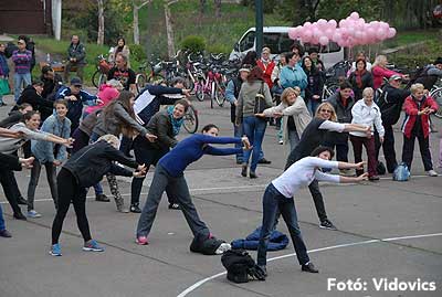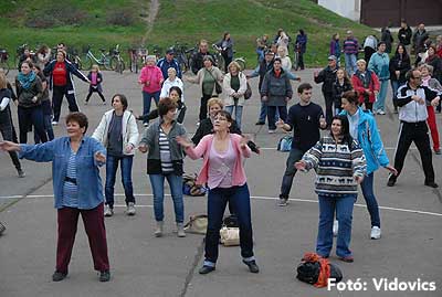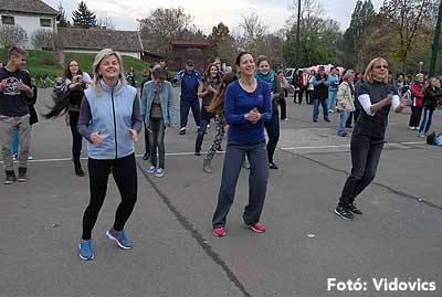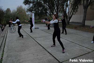 A rövid tájékoztató után Gáspárné Csernus-Lukács Edina és csapata rövid átmozgató tornát tartott, majd indult a kerékpározás!