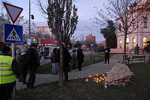 A Szentes Városért Civil Fórum 2013. november 28-án a RADNÓTI EMLÉKHELYNÉL (Városi Könyvtár melletti park) fáklyás, gyertyás megemlékezést tartott a MAGYAR KÖLTÉSZET egyik legnagyobb- mártírhalált halt költője emlékére.