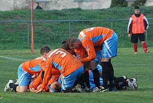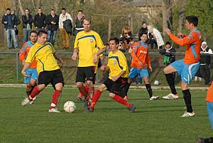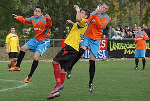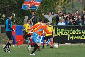 A pályán folyó mérkőzést mindez nem zavarta, ahol feléig fej-fej mellett küzdöttek a csapatok. Közben másik rendezvényre is el kellett szaladnom, és amikor visszaérkeztem, kérdeztem az állást: - 0-0 - jött a válasz! - De kinek a javára? - Nekünk. Egy kapufával vagyunk jobbak! - mondta a kinizsi egyik cserejátékosa.
