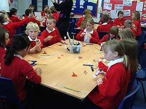 Közös kézműves foglalkozások, a hagyományos népi motívumok ismertetése. Párhuzamok keresése az angol és a magyar nép irodalmában, történelmében és hagyományaiban. Címerek készítése, bemutatása. A sok tanulás mellett kikapcsolódásra is volt lehetőség.