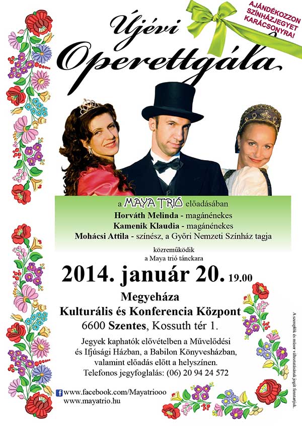 Ünnepek előtt minden ajándékötlet jól jön. Ajándékozzon színházjegyet kedvesének, családjának az Újévi Operettgálára. Bővebb információ a plakáton!