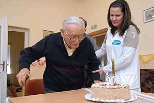 Amikor a klub tagsága énekel ő csak dudorászik - mondta a leánya - , mert hiába töltötte be a kilencvenedik életévét szégyenlős a lelkem!,