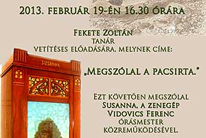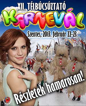 A Koszta József Múzeumba várják mindazokat, akik már nagyon várják a tavasz. 2013. február 19-én Zsuzsanna napon újra megszólal a Koszta József múzeumban található Susanna névre hallgató zenegép. Délután fél 5 órakor Fekete Zoltán tanár "Megszólal a pacsirta" címmel tart előadást, majd Vidovics Ferenc órásmester közreműködésével megdaloltatják a zenegépet. A hosszú tél végén ez az esemény már kedves hagyomány így sokan várják a pacsirta és a Zsuzsannák énekét! Katt a képre! Szentes, 2013. 02. 12. Télbúcsúztató Karnevál Szentesen, A rendezvény részletes programja