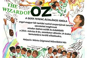 A Deák Ferenc Általános Iskola angol-magyar két tanítási nyelvű csoportjának tanulói szeretettel meghívnak minden érdeklődőt a 2013. március 9-én szombaton délután 14 órakor bemutatásra kerülő előadásukra a Móricz Zsigmond Művelődési Házba.