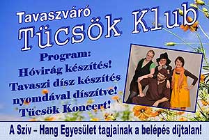 A Szív - Hang Egyesület támogatásával kerül megrendezésre 2013. március 3-án a Tavaszváró Tücsök Klub a Dózsa-házban. Mindenkit szeretettel vár a Tücsök Zenekar! Katt a képre! Szentes, 2013. 02. 28. Segítség az iskolaválasztáshoz 1. (Deák Ferenc Általános Iskola)