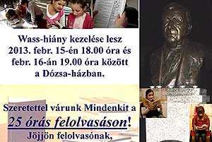 Katt a képre! Szentes, 2013. 02. 04. 25 órás felolvasó maraton Szentesen A Wass-hiány kezelése február 15-én 18.00 órakor kezdődik