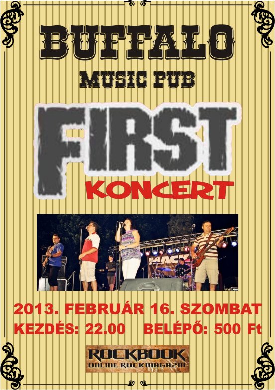 Az orosházi First zenekart nem kell bemutatni a közönségnek, mivel már több éve a Buffalo Söröző legnépszerűbb csapata. Ezt mi sem bizonyítja jobban, minthogy az év szinte bármely szakában, hónapról- hónapra telt házas bulikat produkálnak a Buffaloban. - http://firstmusic.hu/