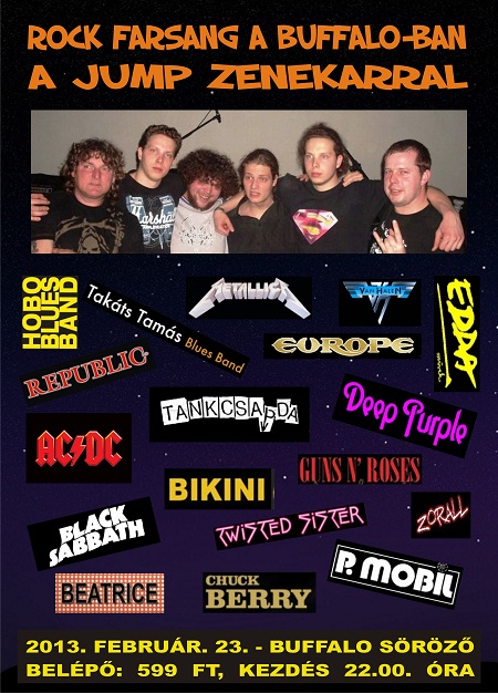 ROCK FARSANG lesz Szentesen a Buffalo Sörözőben, a szegvári Jump Zenekar közreműködésével, február 23-án, szombaton.