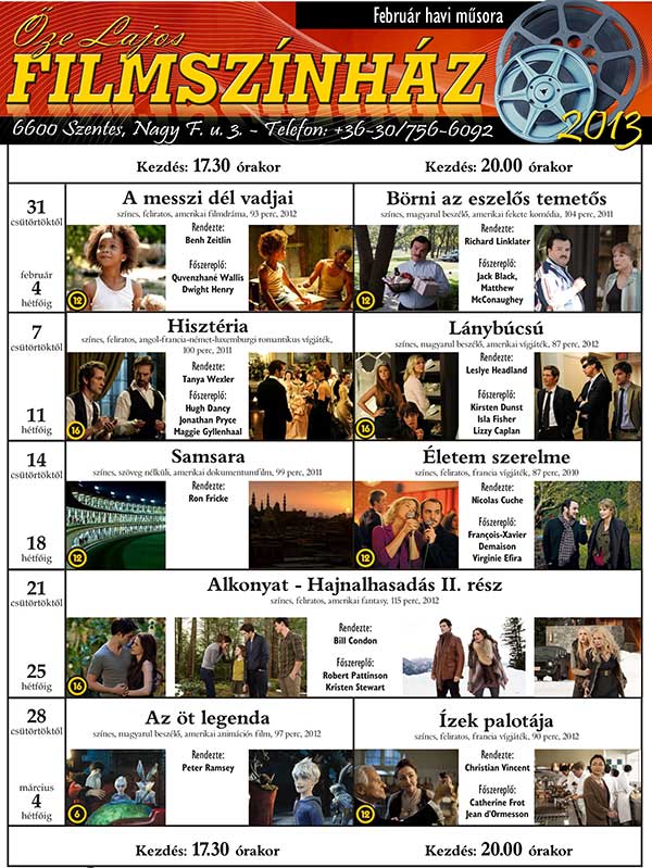 Őze Lajos Filmszínház 6600 Szentes, Nagy Ferenc u. 3. Tel.: +36-30/756-6092
