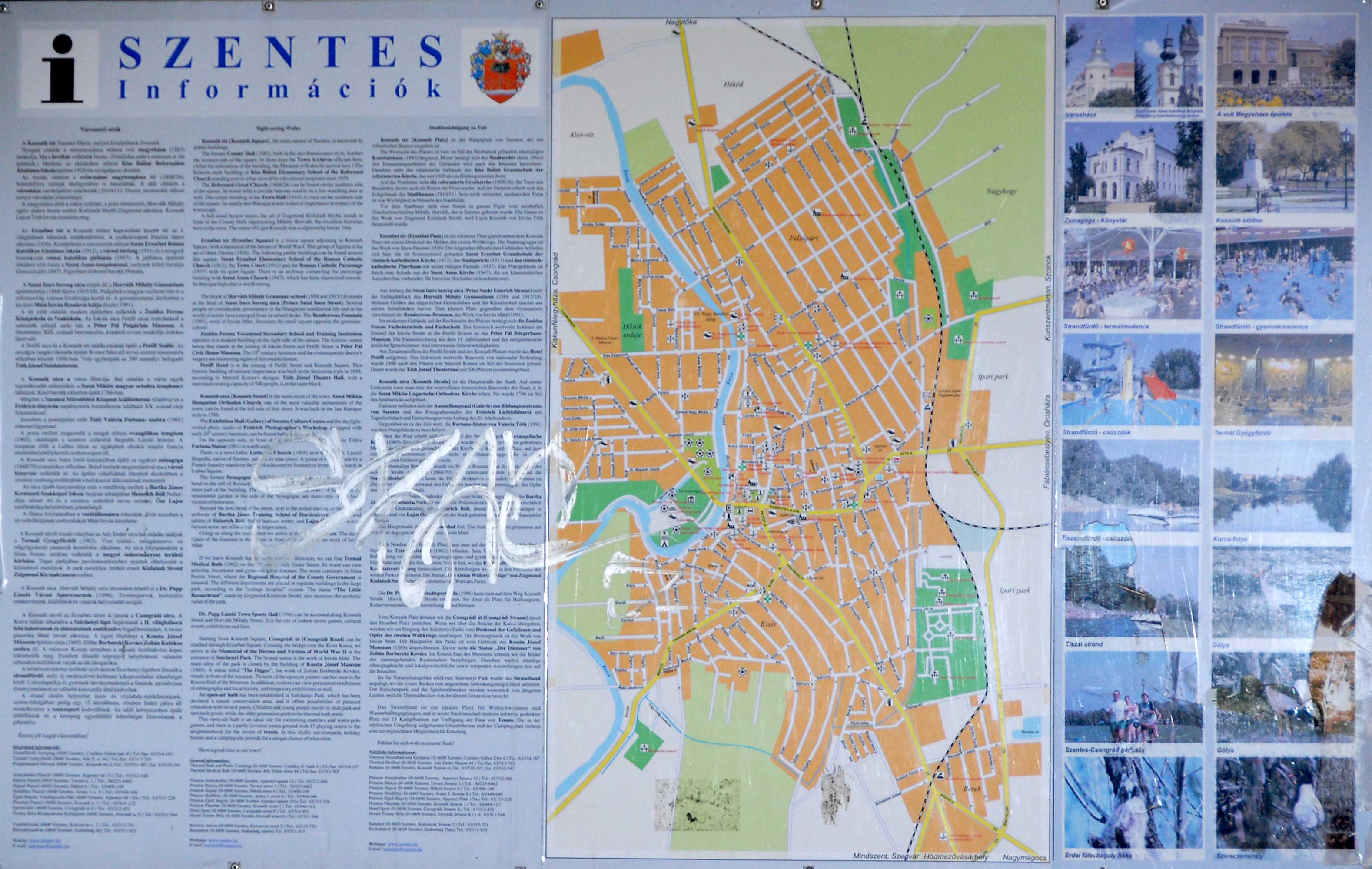 Már hetek óta kész az új turisztikai táblának a terve, melyet a rossz idő miatt nem tudtak a helyére felragasztani az illetékesek. Az elmúlt év őszén (épp hogy vége lett a szezonnak) elkezdték az idei turisztikai évre való felkészülést. Az intézkedési tervben benne van a megrongált turisztikai táblák kijavítása is . Szorgos kezek "munkájának" köszönhetően több helyen megsérültek az időjárás álló táblák. Az új táblák már 2013-as aktualizált információkat tartalmaznak, valamint a legfrissebb városi térképet. A STIEFEL térképészeti cég bocsátotta rendelkezésre a legfrissebb térképét, melyen utcanévjegyzék mellett a házszámok is jelölve vannak. Ezen kívül a tömegközlekedést is ábrázolja. Ilyen volt! Ilyen lesz! Kinagyítható! (Még mielőtt bárki reklamálna, hogy az új táblán nem látható tisztán a térkép, annak el kell árulnunk, hogy a Stiefel cég a szerzői jognak a tulajdonosa, így ezt tiszteletben tartva közölhetjük a tábla képét!)