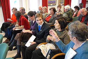 Ezen a napon délelőtt fél 11-kor dr. Horváth György vezetésével vette kezdetét a kötetlen versmondás az Olvasó nő szobor mögötti könyvtárban.