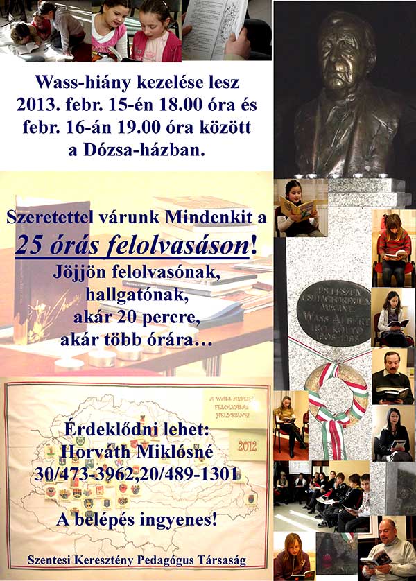 25 órás felolvasó maraton Szentesen A Wass-hiány kezelése február 15-én 18.00 órakor kezdődik