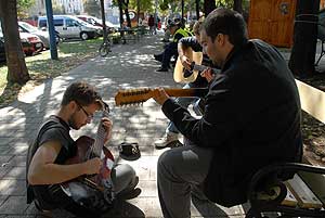 Szeretnénk, ha egy ragyogó tavaszi napon, legközelebb 2013. április 13-án 1 és 5 óra között, kijönnének a Kossuth térre gyerekestől, a kedves anyóssal és a szomszéddal együtt, hallgatnának remek térzenét a Zenebarátok Egyesületétől, a Tücsök Zenekartól, a Fly együttestől és a Pengető Citerazenekartól. Innának sört vagy málnaszörpöt, elcserélnék az ötödik asztali satujukat alig használt amerikánerre és jót beszélgetnének.