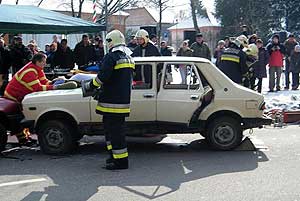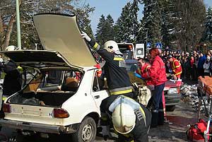 A balesetben két valódi gépjármű vett részt, a statisztaként közreműködő aktivisták sérülései megtévesztően hasonlítottak az ilyen eseteknél keletkező vágásokra, zúzódásokra, viszont igazi mentők, rendőrök és a Csongrádi Hivatásos Tűzoltó-parancsnokság egysége mutatták be, mit is végeznek el a valódi balesetek helyszínein. A bemutatóra érkezett közönséget, akik szinte karnyújtásnyi távolságból tapasztalhatták meg a kárhelyen végzett tevékenységeket, folyamatosan tájékoztatták, mikor mi is történik.