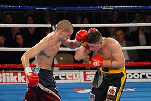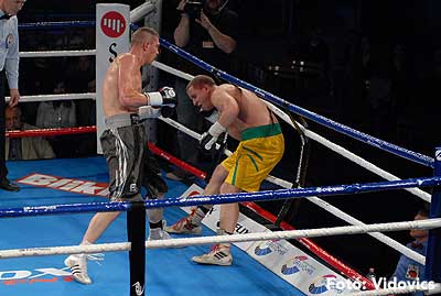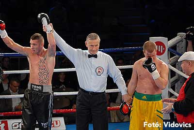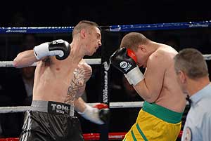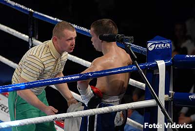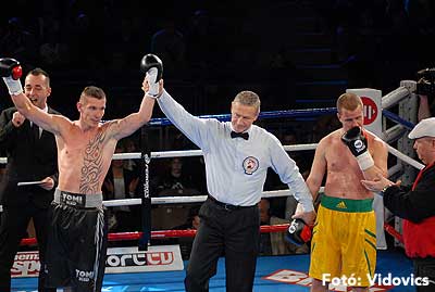 Ezután a szlovákiai Kovács „Tomi Kid" Tamás következett, és könnyű dolga akadt, Vécsei Péter alig tanúsított ellenállást, nagy fölényben volt a galántai magyar. A „kölyök" kétszer is padlóra küldte ellenfelét, az ötödik menetben technikai K. O.-val ért véget az összecsapás.