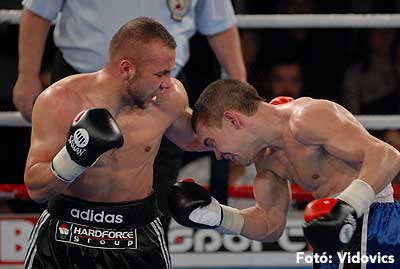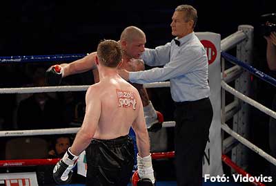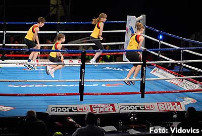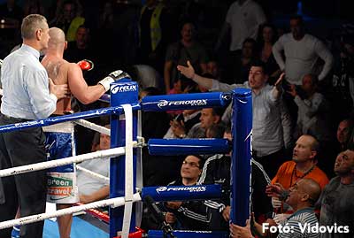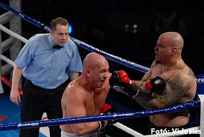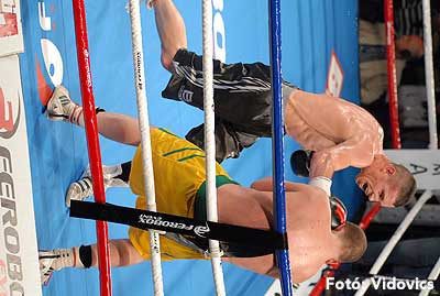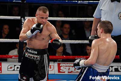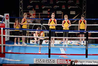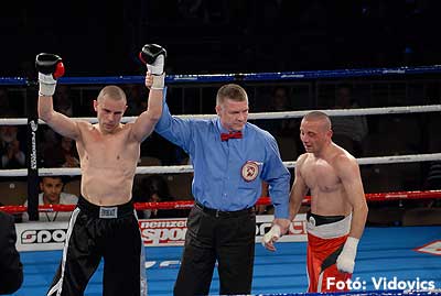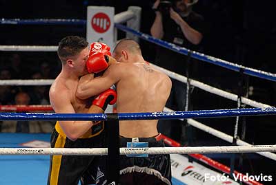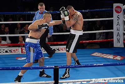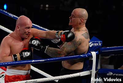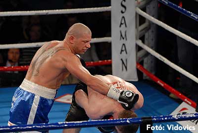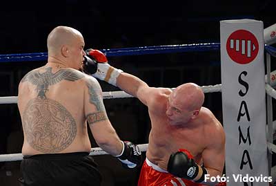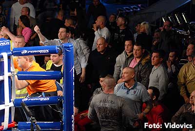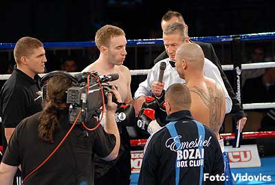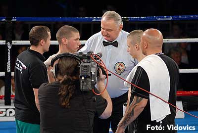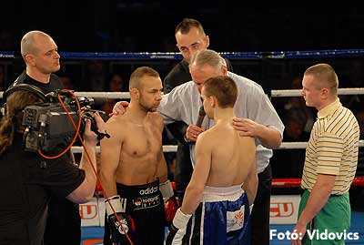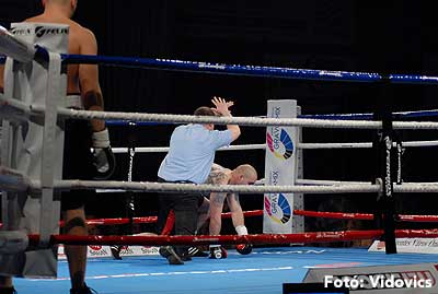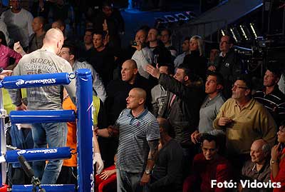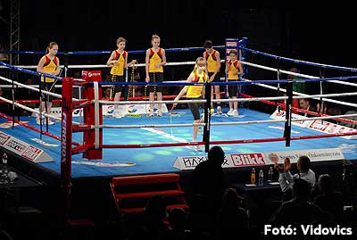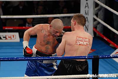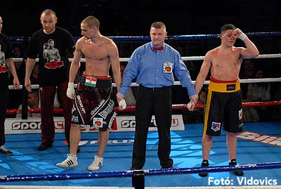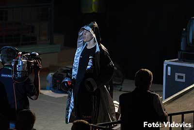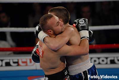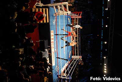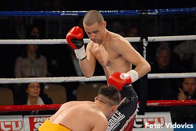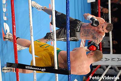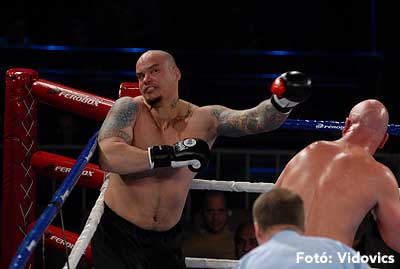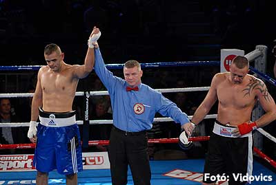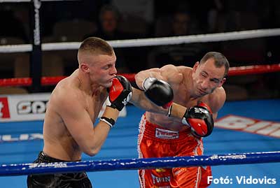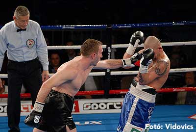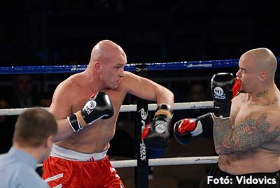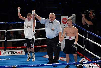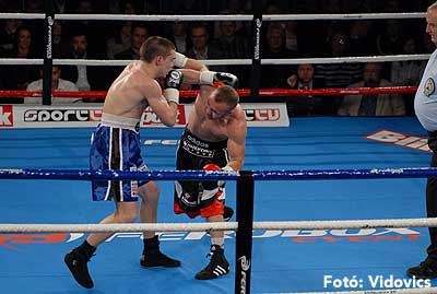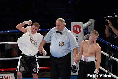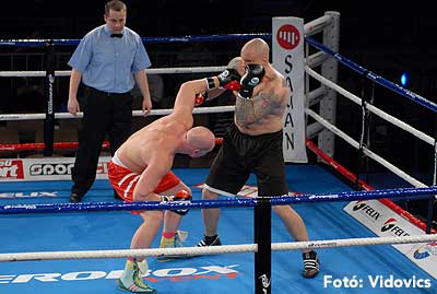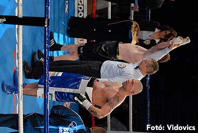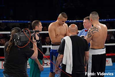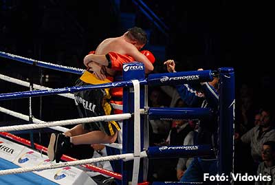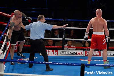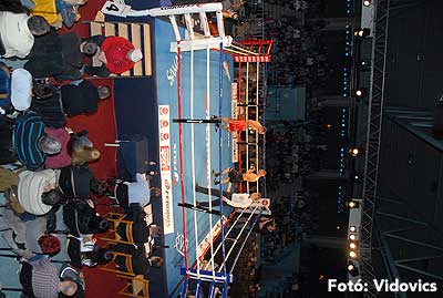 Szóval még az élő közvetítés előtt – egy példát említve – nehézsúlyban Csepregi János és Tóth Zoltán vívott négymenetes, mozgalmas meccset. Előbbit már a második menetben padlóra küldte a Ferobox öklözője, majd az utolsóban kétszer is megrogyasztotta, a másodiknál már nem tudta folytatni Csepregi.