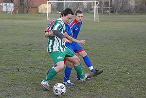 A szentesiek első két gólja percek alatt született, de a félidőt jelző bírói sípszó előtt jutott még idő a mártélyiaknak viszontválaszra. Így 2:1-es Kinizsi vezetéssel térhettek pihenőre.