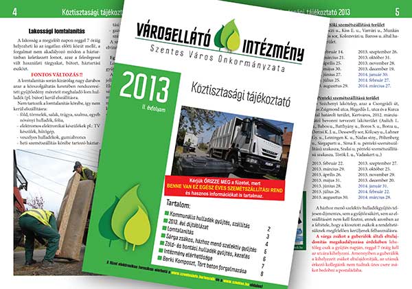 A napokban került minden szentesi háztartás postaládájába a Városellátó Intézmény Köztisztasági tájékoztató füzete. A tájékoztató füzet célja, hogy részletes tájékoztatást nyújtson Szentes Város lakossága számára a fontosabb helyi hulladékgazdálkodással, köztisztasággal kapcsolatos tudnivalókról. Kérjük olvassa figyelmesen és őrizze meg a következő kiadásig.