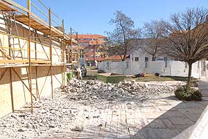Íme az első anyag, mely sokakat érdekel. Megy, vagy marad a "Görög sarok" és az ott található csigalépcső. Az alap koncepcióban úgy volt, hogy mindez elbontásra kerül, de változott a helyzet. A "Görög sarok" mely mára már csak küllemében görög, megmarad, mert nem sikerült az üzlethelység tulajdonosával kompromisszumos megoldásra jutni, így nem bántják azt és a csigalépcsőt sem.