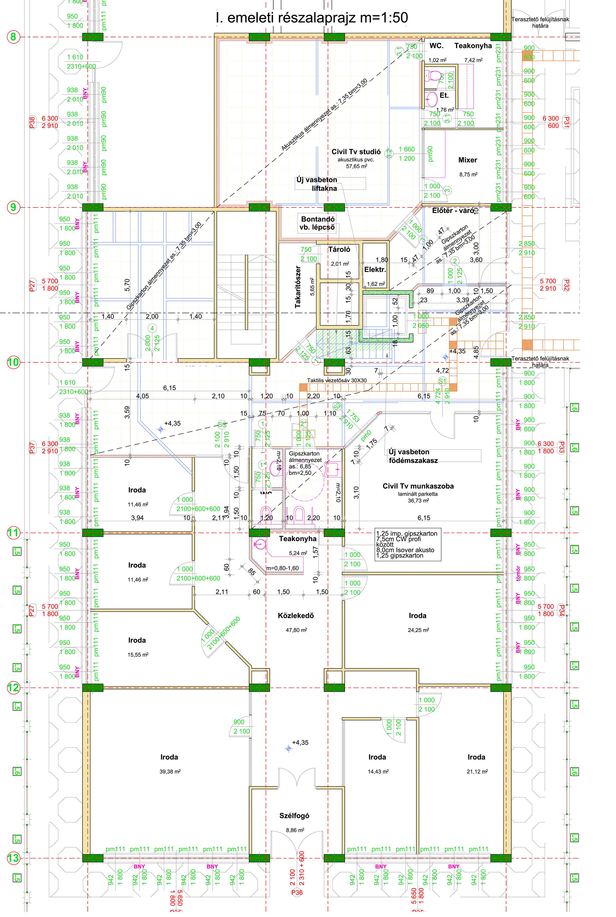 A lakóépület szárny déli részében a földszint és az első emelet között a civil központ és a városi galéria akadálymentes megközelíthetősége céljából új lift lett tervezve. A lepény épület rész dél-keleti sarkán meglévő egyenes karú lépcső elbontásra került, helyette a keleti oldalon új vasbeton kör lépcső épül üveg korláttal. Megvalósul a terasz tető burkolat cseréje új szigeteléssel, a városi galéria előtti részen. A földszint és I. emelet homlokzatának felújítása 8 cm-es hőszigetelést kap (kivétel az első emelet belső udvari homlokzatának azon része, ahol összefüggően lakások találhatóak). A földszint és első emelet részbeni nyílászáró cseréje (műanyag szerkezetűre), külön egyeztetések alapján lettek meghatározva, hogy mely nyílászárók kerüljenek cserére.