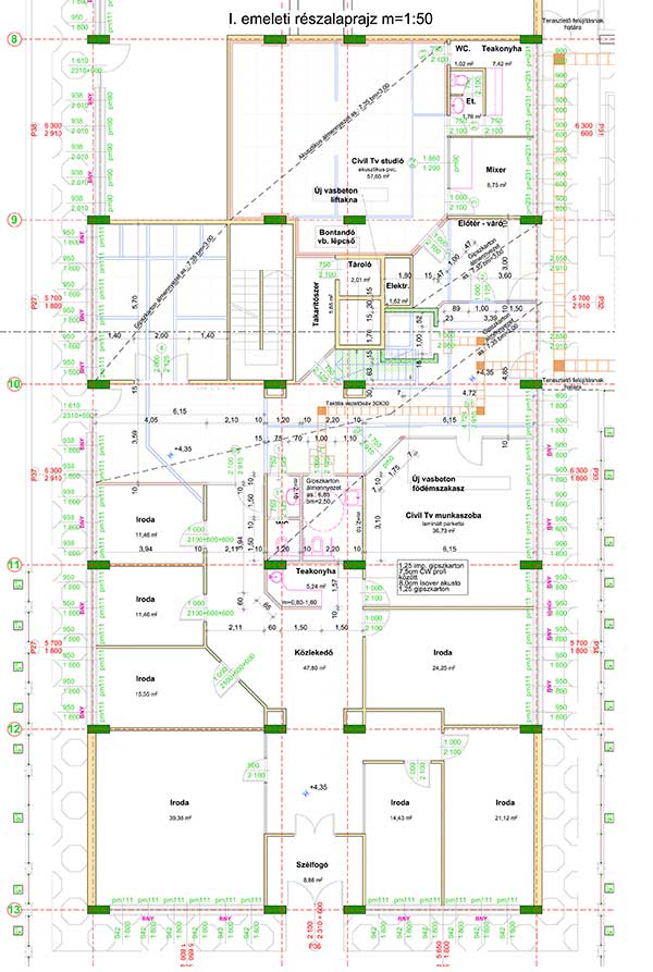 Az épület déli oldalán az első emeleti mellvédeken az üvegezett elemek részbeni cseréje, illetve tömör felületek üveg szerkezetre történő részbeni cseréje valósul meg. Az 1. emeleten akadálymentes mosdó-WC helyiség kialakítása történik. A földszinti portál cserés kereskedelmi egységek esetében a bejárat akadálymentesen lesz kialakítva. A közönség forgalom számára megnyitott helyiségek ajtói akadálymentesen kerülnek kialakításra.