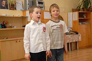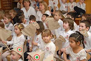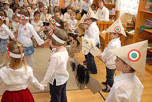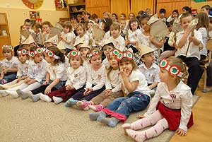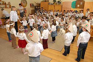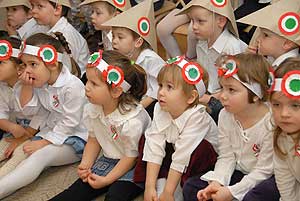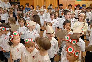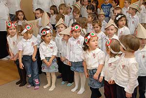 Két nagycsoportos óvodás elszavalta a Nemzeti dalt, majd az óvónők elénekelték a Himnuszt, melyet csodálattal hallgattak a kisóvodások. Utána a csoportok külön-külön is bemutatták, hogy mivel készültek az ünnepre.