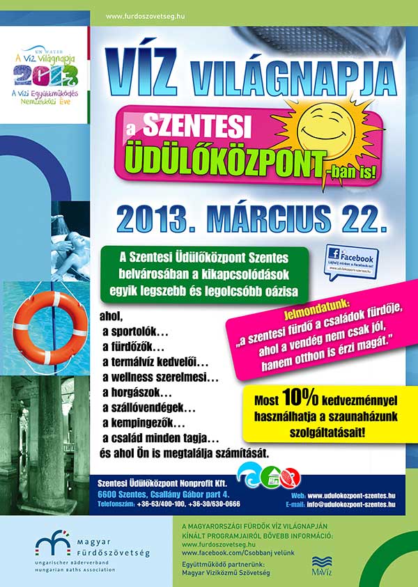 A Szentesi Üdülőközpont is csatlakozott a Víz Világnapja programsorozathoz, mely keretében 2013. március 22-én 10% kedvezménnyel használhatják a szaunaház szolgáltatásait.
