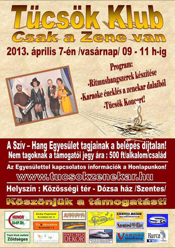 Csak a Zene van!! Tücsök Klub 2013. április 7-én!