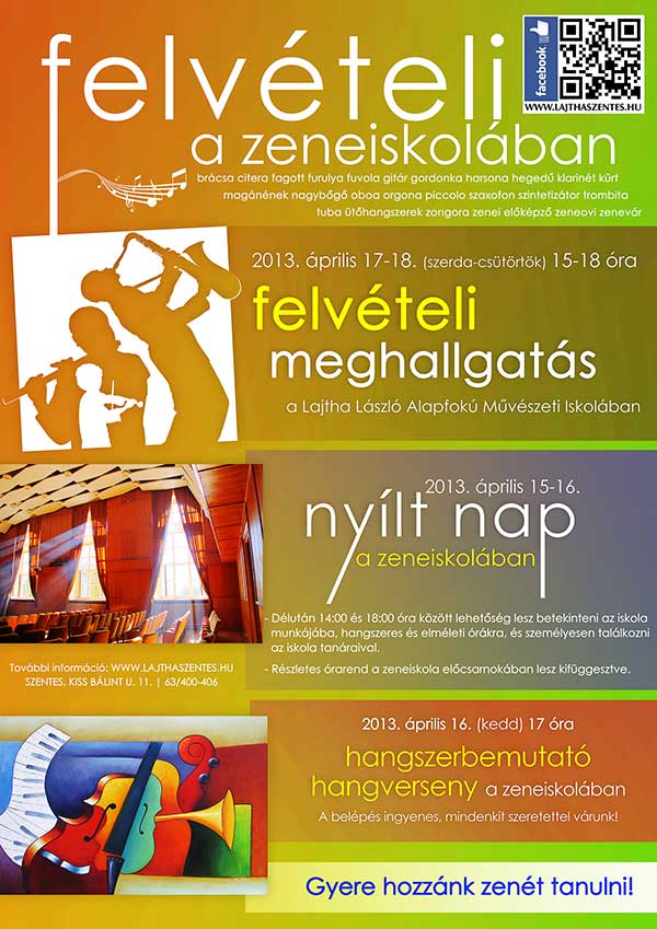 Az iskola életébe való betekintés és ismerkedés után FELVÉTELI MEGHALLGATÁST tartanak az iskolában 2013. április 17-18-án, 15-18 óra között hangszeres és magánének tanszakokra.
