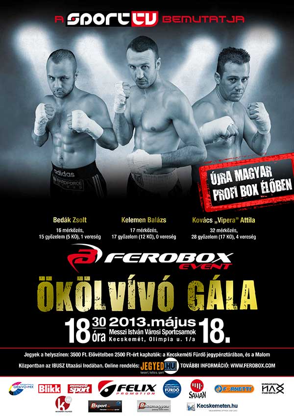 Az idén alakult Ferobox Event profi boksz menedzseriroda soron következő eseményére május 18.-án kerül sor Kecskeméten, a Messzi István Sportcsarnokban. A 18:30 –kor kezdődő esemény főbb mérkőzéseit ismét élőben közvetíti a Sport1 televízió.