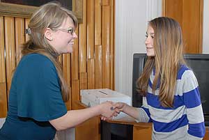 A képen az ifjúsági polgármester és alpolgármester és miközben fényképeztük őket egyszerre hangosan kiáltották a többiek "DÍVÁK!". :-)